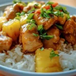 A delicious and colorful dish that combines tender chicken, juicy pineapple, and fluffy rice for a satisfying meal.